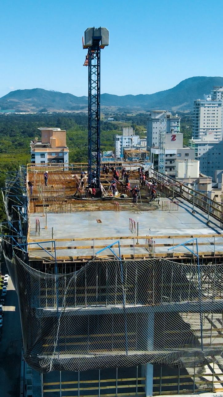As etapas executadas até o momento incluem fundação, 100% concluída, estrutura e alvenaria do embasamento, além de instalações elétricas e hidrossanitárias em andamento. Até agora, já foram utilizados 13.337 m³ de concreto, o que representa 80% do total estimado para toda a construção, além de mais de 1.037 toneladas de aço, o equivalente a 65% da meta prevista. As soluções construtivas adotadas incluem formas metálicas para pilares e lajes, que otimizam o tempo de execução, e sistemas como fachada ventilada e drywall acústico, voltados à eficiência térmica e conforto dos futuros moradores.