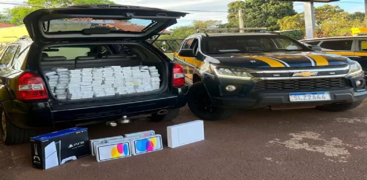 A abordagem ocorreu na quinta-feira (23), por volta das 6h, na BR-163, também em Dourados. O empresário viajava com a esposa em um Volvo quando os policiais encontraram compartimentos ocultos no painel e no porta-malas do veículo. Dentro deles estavam 139 iPhones, 30 AirPods e um Power Adapter, avaliados em R$ 1,7 milhão.