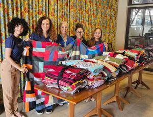 As colchas doadas seguem para casas de repouso e instituições atendidas pela campanha Aquecendo Vidas, programa estadual que distribui roupas, cobertores e materiais têxteis a idosos em situação de vulnerabilidade, com reforço nos períodos de maior necessidade climática. A produção envolve voluntários de diversas idades e perfis, que se reúnem regularmente para cortar, montar e costurar as peças, transformando os retalhos doados em colchas completas.