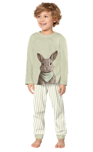 Para acordar no clima de Páscoa, a coleção se estende também à linha de sleepwear, com pijamas femininos e masculinos que seguem a temática. Produzidos em meia malha 100% algodão, os modelos apostam em estampas de coelhos e tons claros. Para as meninas, o estilo americano e as estampas rotativas reforçam a delicadeza, enquanto o modelo dos meninos traz o coelho como destaque.