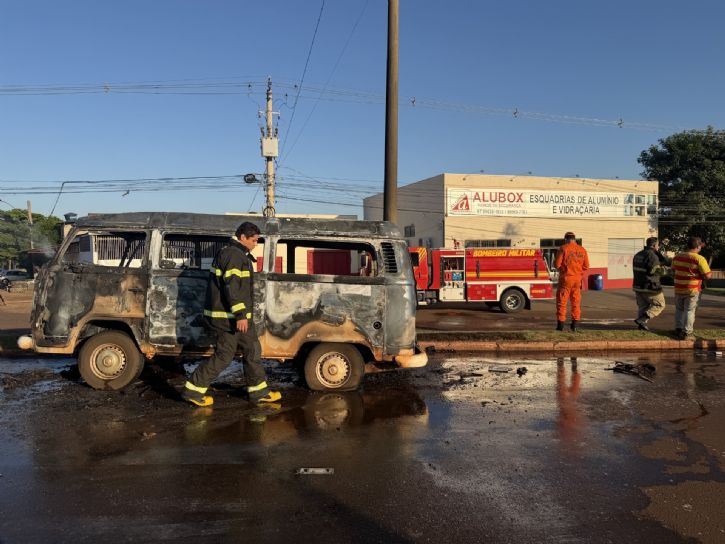Uma Kombi pegou fogo na manhã desta quarta-feira, logo após sair de um posto de combustível. O motorista, Eliseu Valente de Oliveira, relatou que o veículo havia sido abastecido e, cerca de 50 metros depois de deixar o local, começou a “fumarciar cedo”.