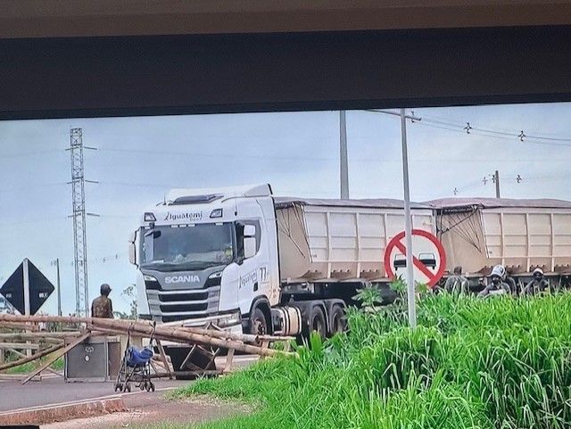Os manifestantes estão utilizando pedaços de madeira e pedras para dificultar a passagem dos veículos.