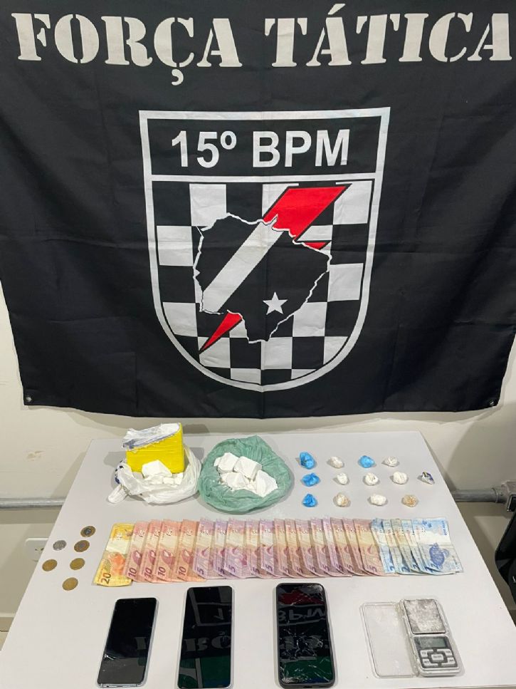 Durante a averiguação, os militares visualizaram do lado externo uma mochila compatível com a denúncia e, diante das fundadas razões e do caráter permanente do crime de tráfico de drogas, a equipe de Força Tática adentrou o imóvel, onde localizou aproximadamente 700 gramas de cocaína, 67 gramas de crack já fracionado, além de uma balança de precisão e dois aparelhos celulares.