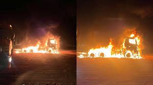 Caçamba pega fogo e motorista salva cavalo mecânico de carreta na BR-262