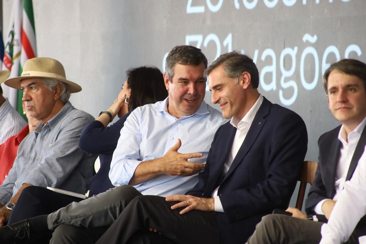 "Nesses quatro anos o nosso Estado está fazendo história porque tem um governador que teve a capacidade de defender Mato Grosso do Sul. E nós temos que resolver o problema das rodovias e da ferrovia, e isso está acontecendo agora", afirmou a ministra Simone Tebet. "O Mato Grosso do Sul está em máxima de investimento do Governo Federal, de atração de investimento privado e vai entrar agora para o leilão da Malha Oeste, em máxima de investimento ferroviário. Isso vai aumentar a competitividade. O Estado se aproxima de São Paulo em infraestrutura para exportar aquilo que produz. Então é muito importante", disse o ministro Renan Filho.