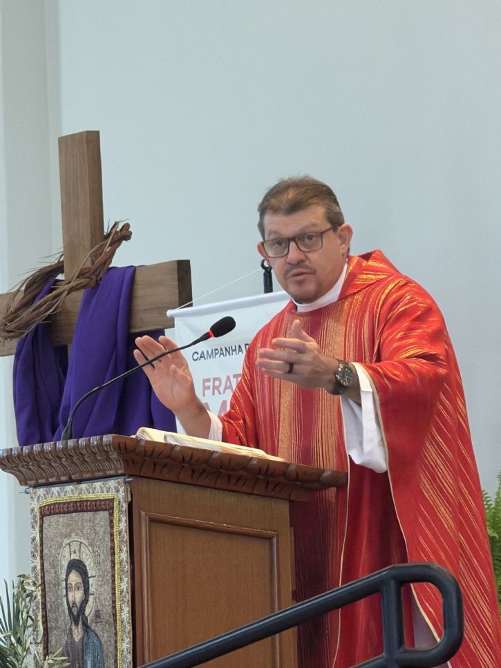 Durante a celebração do Domingo de Ramos, neste 29 de março, na Paróquia Nossa Senhora Aparecida, o padre Júnior conduziu os fiéis a uma profunda reflexão sobre a dor humana e o sentido do sofrimento à luz da Paixão de Cristo.