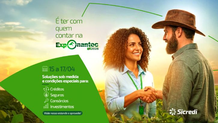 Durante a feira, a Sicredi Centro-Sul MS/BA oferecerá atendimento consultivo aos associados e visitantes, com acesso a um portfólio completo de produtos e serviços financeiros. Entre os destaques, estarão condições especiais em crédito rural e empresarial, seguros, consórcios e investimentos, contribuindo para o fortalecimento das atividades no campo e para a geração de novos negócios.